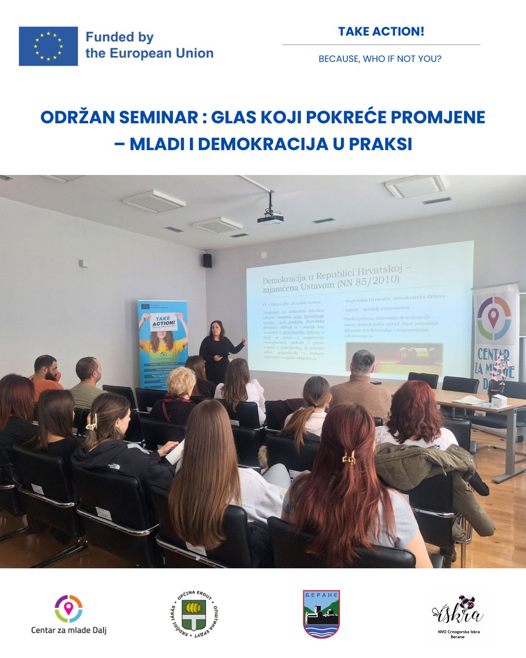 U sklopu projekta TAKE ACTION! BECAUSE, WHO IF NOT YOU? pozivamo vas na interaktivno predavanje i moderiranu grupnu raspravu na…