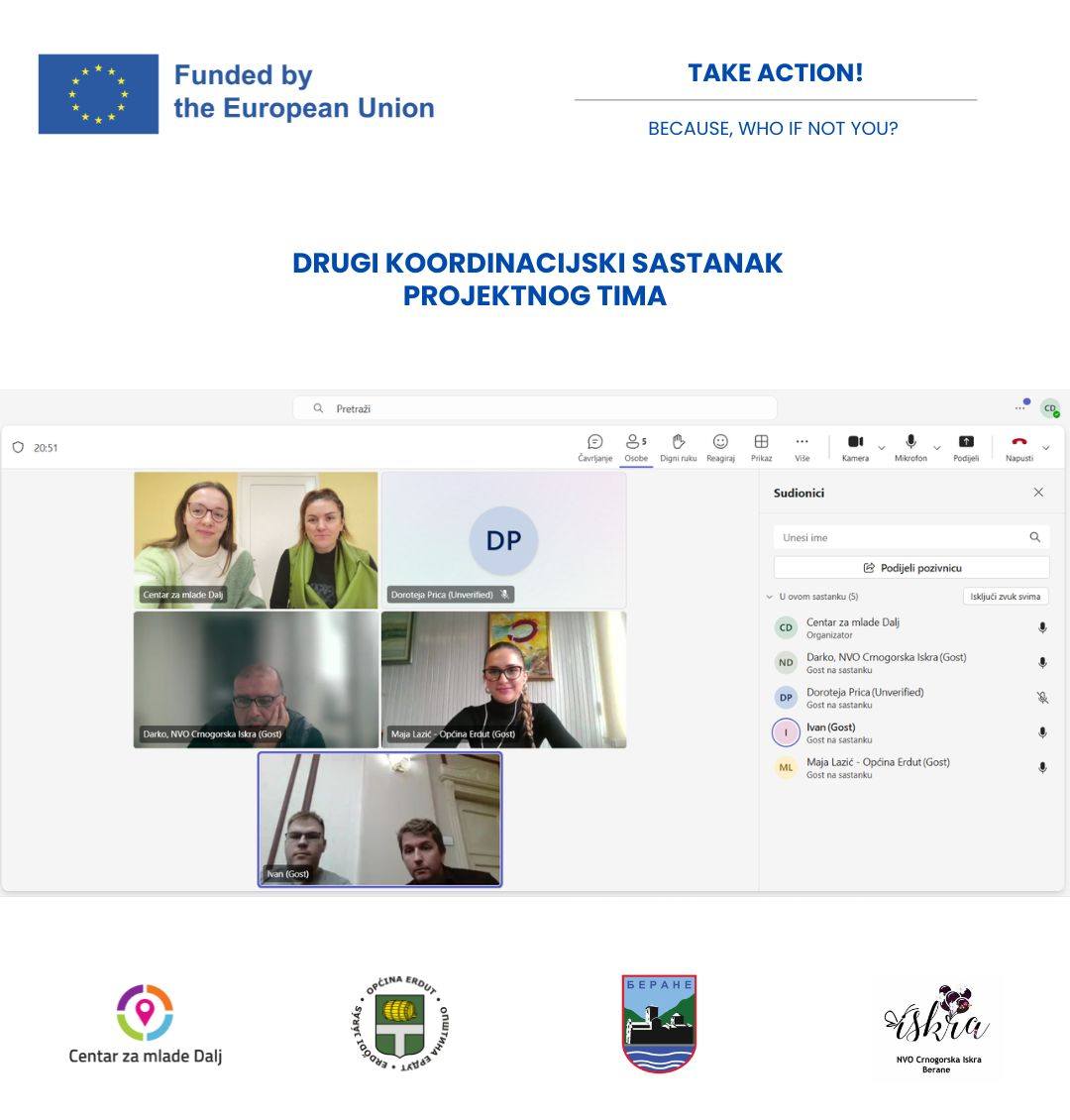 ODRŽAN DRUGI ONLINE KOORDINACIJSKI SASTANAK PROJEKTA TAKE ACTION! BECAUSE, WHO IF NOT YOU?