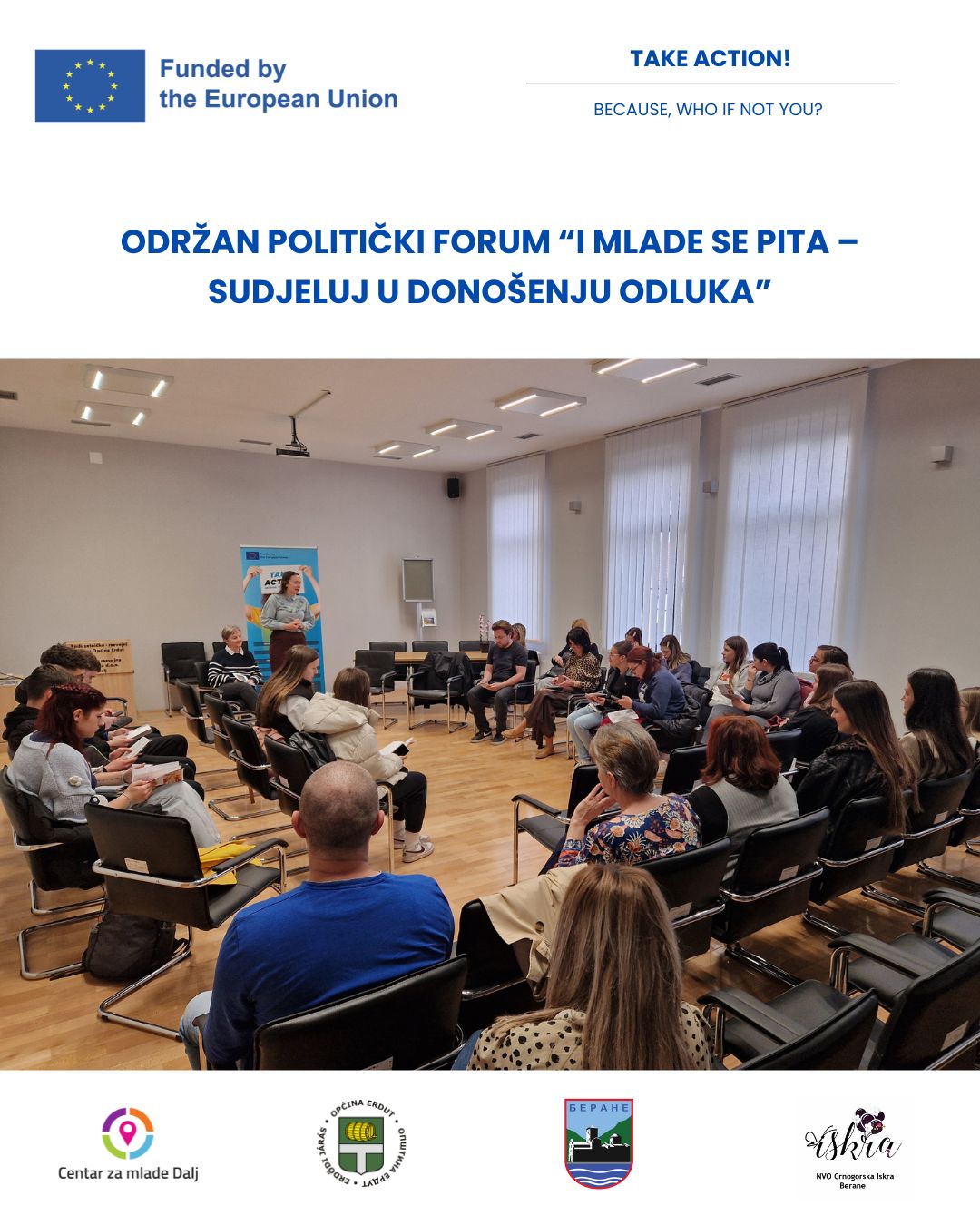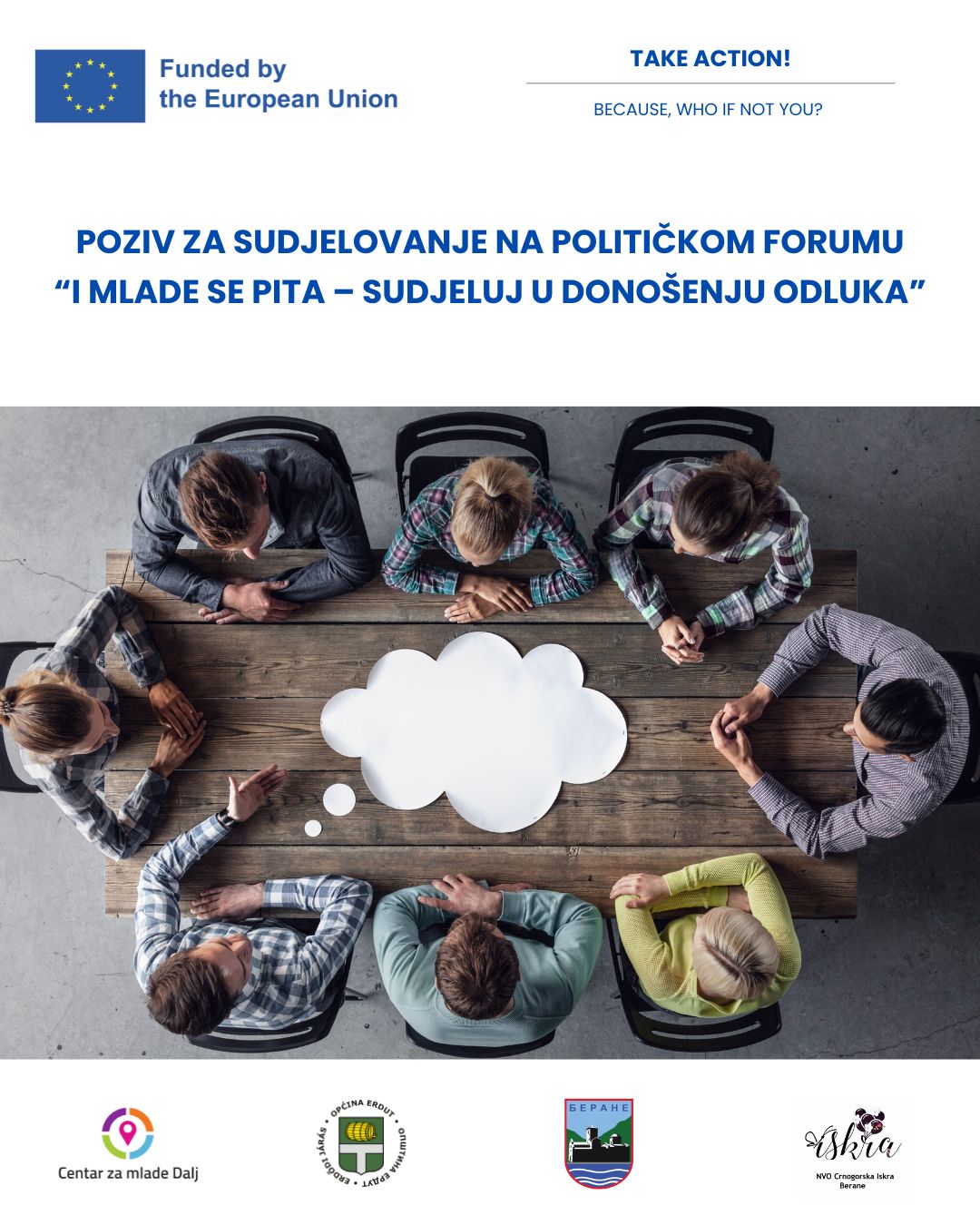 POZIV ZA SUDJELOVANJE NA POLITIČKOM FORUMU I MLADE SE PITA! – SUDJELUJ U DONOŠENJU ODLUKA U sklopu projekta TAKE ACTION! BECAUSE, WHO IF NOT YOU?